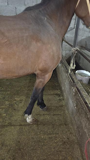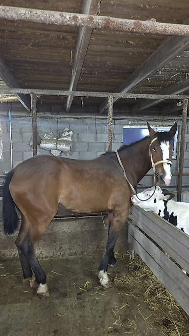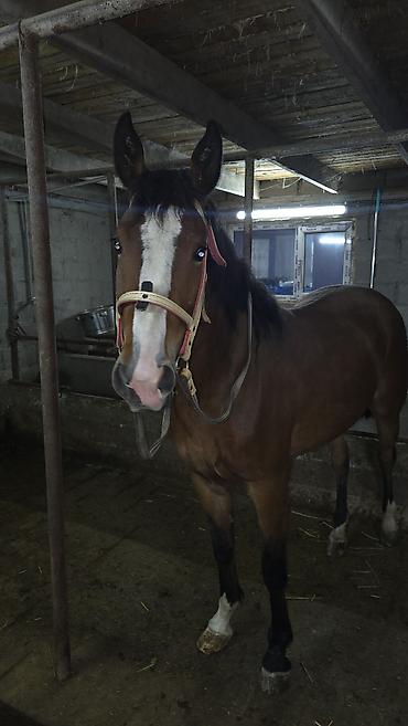- Масть: гнедая, белая проточина на морде, белые чулки на передних копытах
