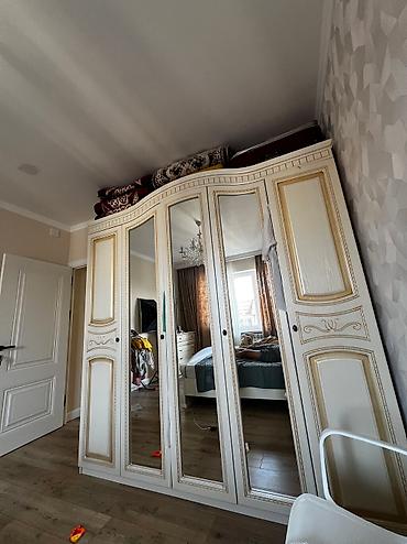 Вес комплект 35000т сом Спальный гарнитур в классическом стиле, светло‑кремовый цвет, с фрезеровкой и декоративными накладками под бронзу. Комплект включает: - Шкаф платяной 5‑дверный с двумя з...