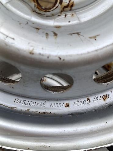 Литой диск Nissan + шина - Оригинальный литой колесный диск Nissan, 5‑спицевый дизайн, центральная заглушка с логотипом. - 4 отверстия под болты (4‑х болтовое крепление). - Диаметр диска R16 (по п...