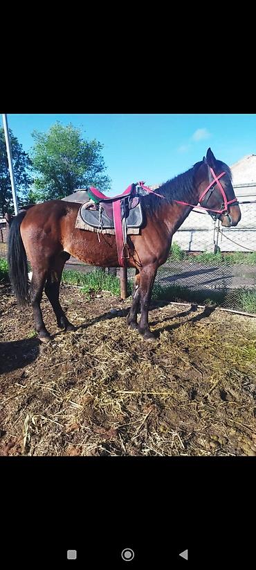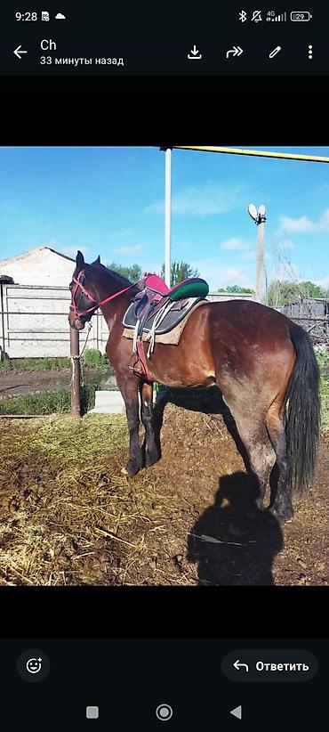 бычылган жорго ат 6 жашЛошадь рыжей масти с полным набором для верховой езды. - Универсальная рабочая лошадь, компактного формата, подходит для прогулок по полям и пастбищам. - Установлена уздечка...