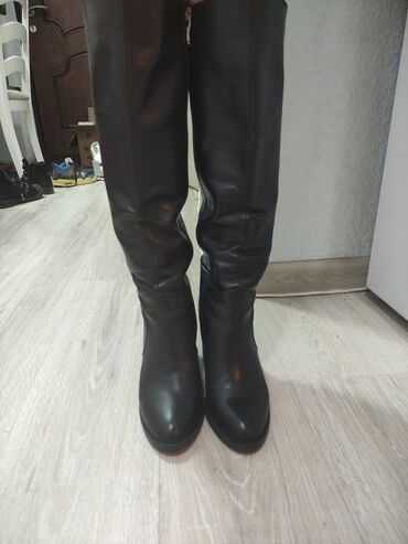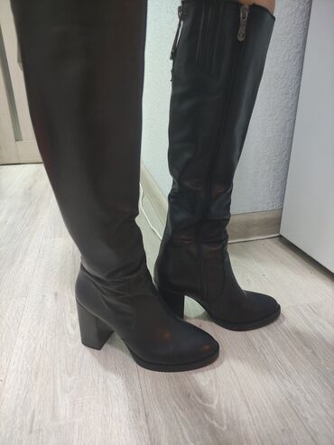 Сапоги хорошие качественные из чёрной мягкой бархатистой замши, размер 39 (подойдут и на 38 размер), турецкие. Один раз одевала в офис, мне маловаты. Продаю за 2900сом (покупала в магазине за 85...