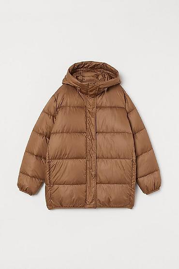 Пуховик H&M с капюшоном, черный. - Прямой силуэт, горизонтальная
