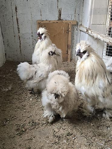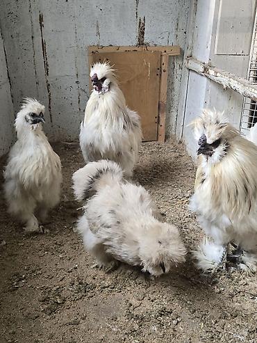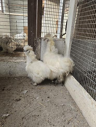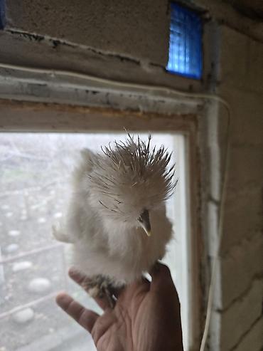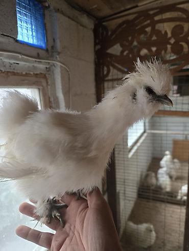 Порода: китайская шёлковая курица (Silkie), белое/кремовое оперение.