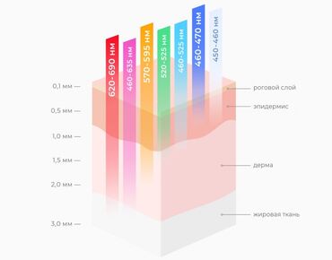 В LED-терапии используется свет с разной длиной волны, то есть лампы разного цвета. Лучи запускают в коже определенные реакции и процессы.