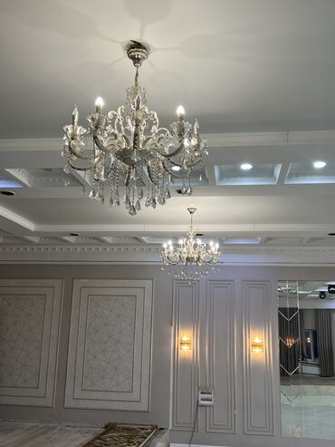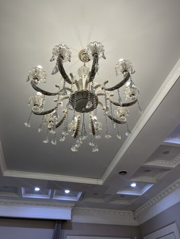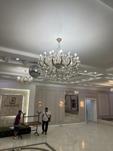 Люстра подвесная с каскадом розовых нитей/подвесок. - Тип
