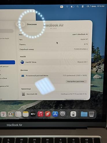 MacBook Air 13.6" (2022) на чипе Apple M2 - Процессор: Apple M2 - Память: 8 ГБ - Накопитель: 256 ГБ SSD (доступно ~120 ГБ на фото) - Экран: 13.6" Liquid Retina, 2560×1664, вырез под камеру - Клави...