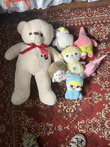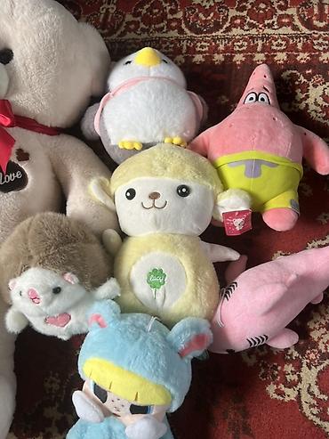 мягкие игрушки. большие 150 сом за одну.маленькие 70 сом за одну. боулинг 600 сом набор. горшок 150 сом. машины. большие 400-500 сом. мале...
