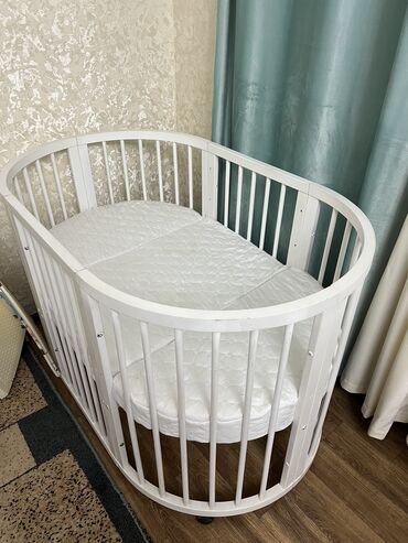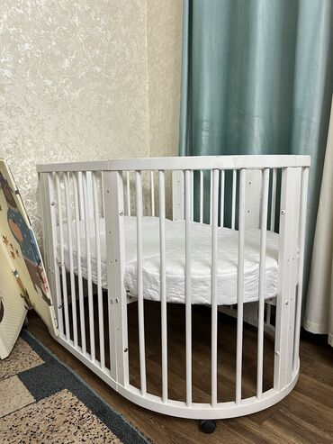 Детский манеж-кроватка трансформер 🔥 В комплект входит 2 матраса, маятник и бортики.