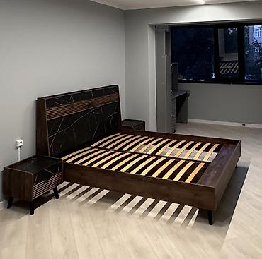 Спальный гарнитур, Б/у, Двуспальная кровать, Кыргызстан, МДФ, Самовывоз, цвет - Коричневый