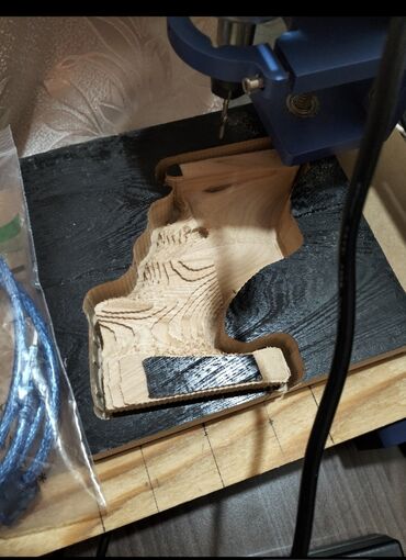 В комплект к станку отдаю большой комплект фрез, 2 блока питания, изготовленный предметный столик для закрепления заготовок, несколько досок из массива вяза.