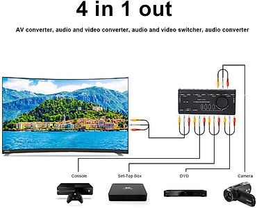 4-в-1 выход - AV-конвертер, аудио- и видео конвертер, аудио- и видео переключатель, аудио конвертер.