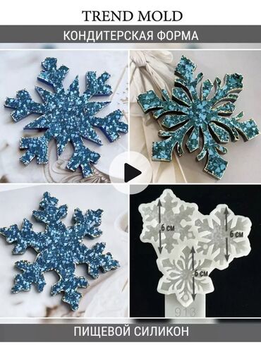 Набор новогодних декоративных фигур из эпоксидной смолы. Описание: - Формы: елочки, снежинки, олень. - Каждая фигура отлита вручную, с полупрозрачным эффектом, глиттером и переливами цвета (синий,...