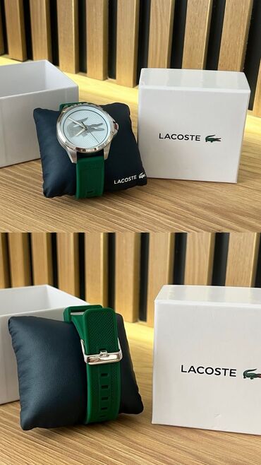 Продаю стильные фирменные часы Lacoste Le Croc с зелёным силиконовым ремешком.