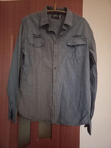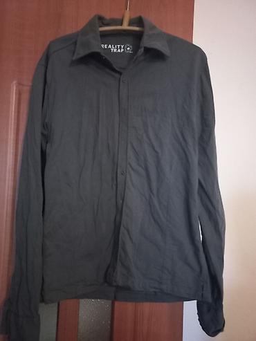 Мужская рубашка брюки оверсайз, темно‑серая. - Классический отложной воротник - Застежка на пуговицы по всей длине - Длинные рукава с манжетами на пуговицах - Прямой низ, свободный крой - Плотная х...