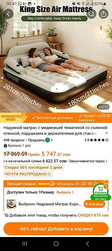 Срочно продаю надувной матрас состояние идеальное размер написано на коробке на одного человека идеально подойдёт купили на Иссык-Куль кому интересно пишите на Ватсапп или звоните