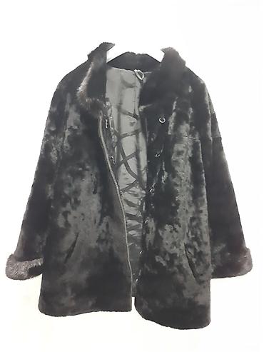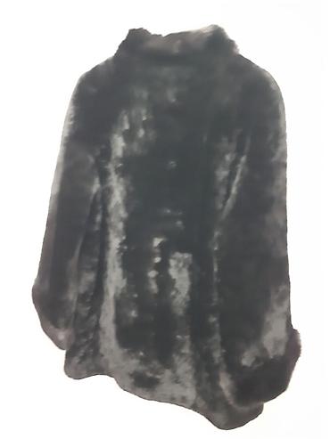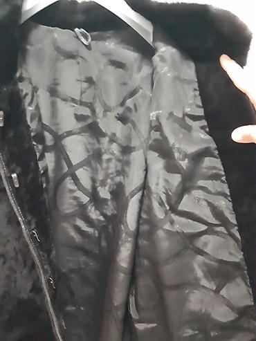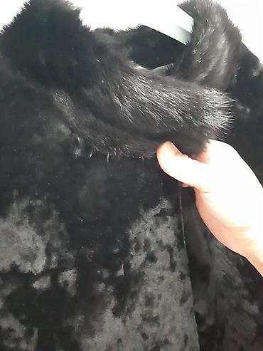 Шуба из натурального меха, классический прямой крой. Цвет: насыщенный тёмно‑коричневый/чёрный с благородным блеском. Длина до середины бедра, длинные рукава. Тёплый воротник‑стойка/полустойка, заст...