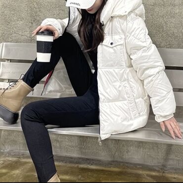 Укороченный пуховик/куртка-бомбер, черный - Модель: укороченная длина, объемный силуэт - Застежка: молния по центру - Воротник: высокий стойка - Карманы: 2 боковых прорезных - Низ и манжеты: плотн...
