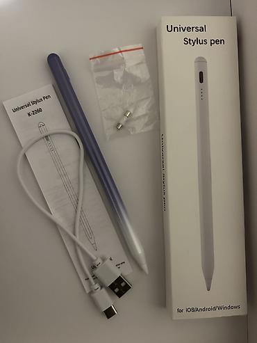Стилус для планшета/смартфона подробнее пишите в тг: kaktussj1 Комплектация: - стилус белого цвета с плоской гранью и кнопкой включения - запасной наконечник - кабель зарядки USB–C - пластиковый л...