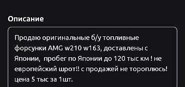 Продаю оригинальные б/у топливные форсунки AMG w210 w163, доставлены с Японии, пробег по Японии до 120 тыс км ! не европейский шрот!! Подходят только на AMG моторы !! продажей не тороплюсь!.