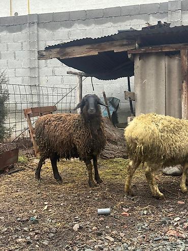 Овцы (две головы), мясо‑шерстное направление. Описание: - Порода помесная, крепкий костяк, выносливы. - Окрас: одна светлая, одна тёмно‑бурого цвета. . - Подходят для разведения и получения мяса/ш...