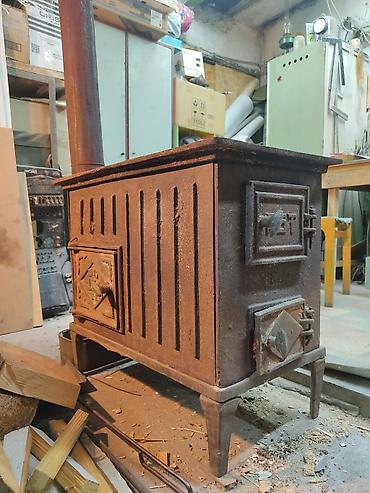 Чугунная печь-«буржуйка» с варочной поверхностью. Особенности: -