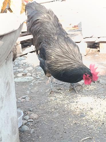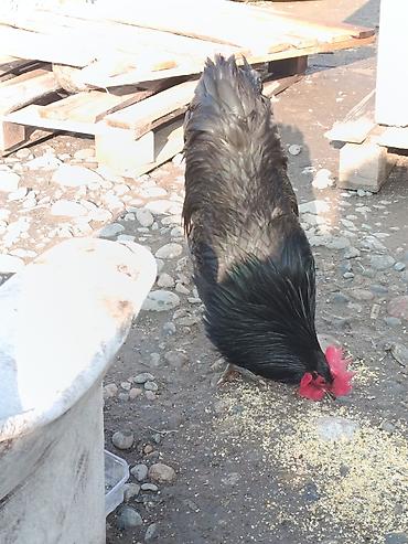 - Порода/тип: крупный петух с плотным корпусом, глянцевое черное оперение с зеленым отливом.