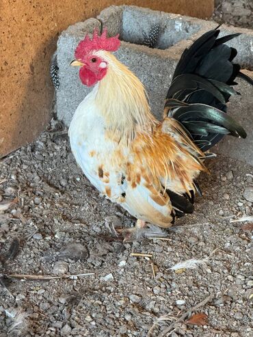 Петухи породного типа (декоративно-мясного направления) - Окрас: есть ярко-рыжий с черным хвостом и крыльями, а также светлый (кремово-белый с черными крапинами). Гребень листовидный, насыщенно-кр...
