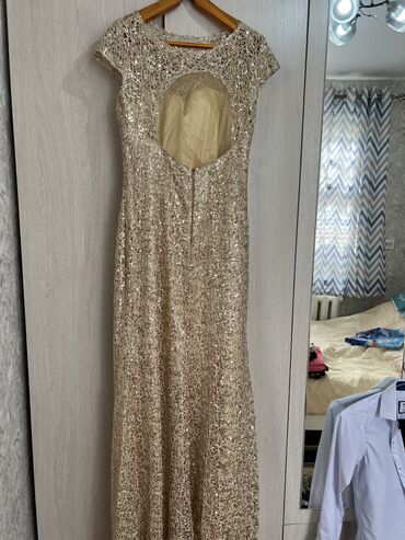 Вечернее платье, А-силуэт, Длинная модель, Без рукавов, С пайетками, S