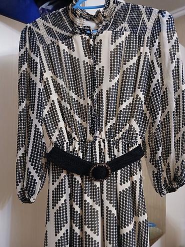 женское платье в отличном состоянии. 46 размер. ткань прада на лето как холодок. на остановке 170 длина до щиколотки. цена 300 сом.