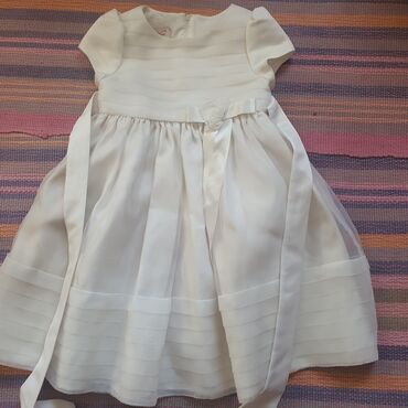 Платье шили индивидуально по заказу на 1-2 года, сзади пояс завязывается большим бантом, низ пышный с подкладом. Одевали 2 раза. На 1ом фото ребенку 12 месяцев.