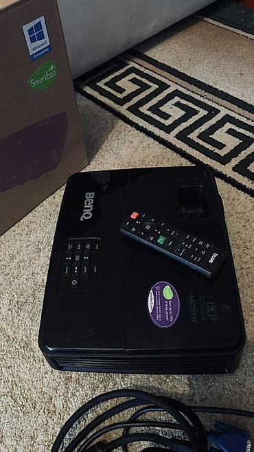- В комплекте на фото: проектор BenQ MS521P, пульт ДУ, силовой кабель, кабели VGA/HDMI, родная коробка