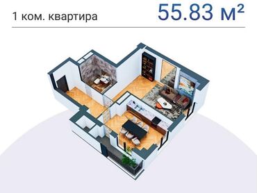 Продаю 1 комнатную квартиру 📍Адрес: Пишпек 🏢ЖК: Семетей 🏗️СК: Мунара Строй 🏛️Серия: Элитка 🏬Этаж/Этажность: 12/12 (есть тех этаж) 📐Площадь: 55квМквМ 💧К...