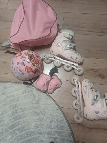 Продаю ролики в отличном состоянии в комплекте со шлемом, подлокотниками и наколенниками 2000 сом.