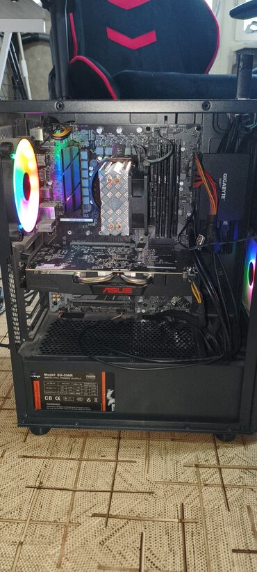 Игровой/рабочий ПК Комплектация по фото: - Видеокарта Gigabyte AORUS RX580 8G - Процессор AMD Ryzen 3600 с крупным башенным кулером DeepCool Fryzenдвойным вентилятором и красной подсветкой — эффе...