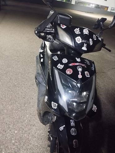 ПРОДАЮ СКУТЕР, БРАЛ СЕБЕ И ВОСТАНАВЛИВАЛ ПОЧТИ С 0. ПРОДАМ В ХОРОШИЕ РУКИ, СКУТЕР ОЧЕНЬ ХОРОШИЙ, ТЕХНИЧЕСКИ ИДЕАЛЕН. ВЛОЖЕНИЯ ПЛАСТИК ЧУТЬ ЧУТЬ. Скутер/мопед спортивного стиля, черный цвет, с декорированием кузова наклейками. Агрессивная передняя оптика: яркие светодиодные ДХО/габариты и основная фара, хорошо освещают дорогу в темное время. Узкая передняя панель с острыми линиями, ветровик. Передняя подвеска телескопическая, дисковый передний тормоз. Широкое сиденье, схема «степ‑тру» (ровный пол для ног). Задний багажный кофр установлен на багажнике — удобно для перевозки вещей. На руле — крепление/держатель для смартфона. Зеркала заднего вида, боковые поворотники интегрированы в переднюю облицовку. Задняя часть с ручками для пассажира. Колеса дорожного типа с выраженным протектором.