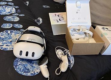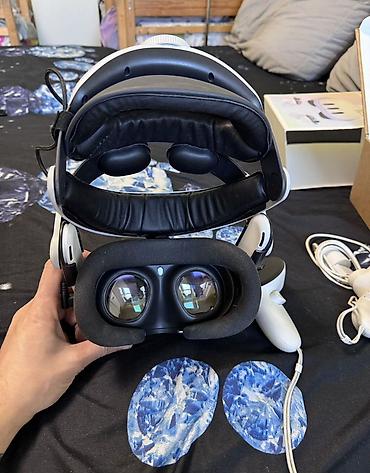 Шлем виртуальной реальности Meta Quest 3 — автономная VR-система белого цвета. почти новый пользовался сам пару дней Комплектация по фото: - шлем VR с регулируемым оголовьем и мягкими накладками...