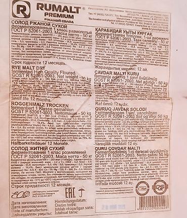 Продаю Солод ржаной сухой ферментированный 50кг
