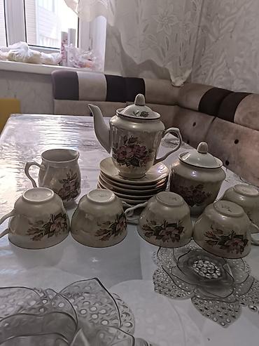 Продаю советский форфоровый чайный сервиз на шесть персон,не хватает одного бокала,новый,не пользованный,перламутровый очень красивый, цена всего 3500 сом,на втором фото советское форфоровое блюдо большое,без трещин и сколов, цена всего 600 сом.