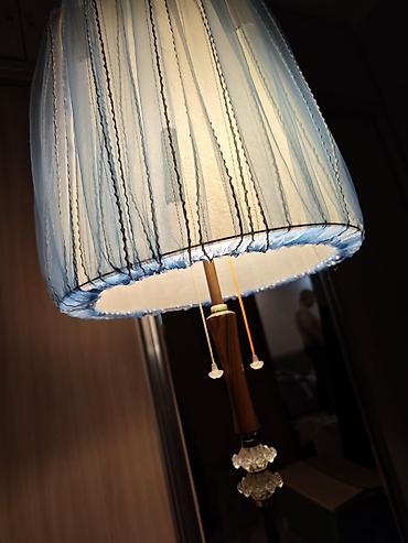 Торшер напольный СССР, высота 155 см. - Классический советский дизайн: строгая стойка под дерево, декоративные стеклянные элементы, массивная круглая подставка. - Абажур цилиндрической формы с гол...