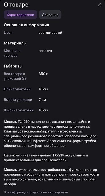 продаю 1000сом. стационарные телефоны Panasonic. производство Япония. Состояние нового.Вход•Регистрация