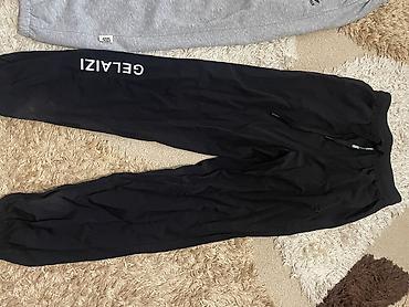 - Детали: боковые карманы; у серых — небольшой принт/логотип на бедре, у черных — вертикальный принт “GELAZI” на брючине.