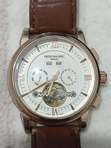 Продаю стильные наручные часы в классическом исполнении. Модель выполнена в корпусе цвета «розовое золото» с белым гильошированным циферблатом и коричневым ремешком под кожу крокодила. Идеальный вариант для тех, кто ценит эстетику люксовых брендов.