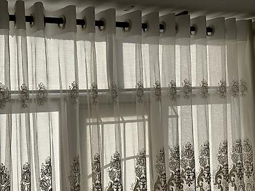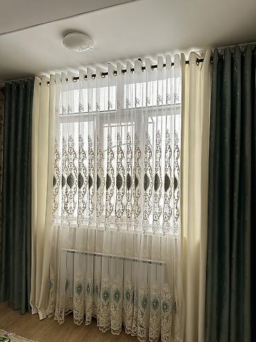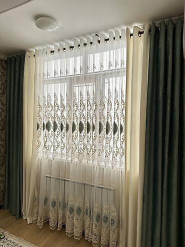 Продаю Шторы и тюль в комплекте. Шторы ширина 2 метра высота 2.75м. Тюль высота 2.75 метра , ширина 2.50 метра. Цена полного комплекта 2300 сом. Забрать можно в мкр. Юг-2.