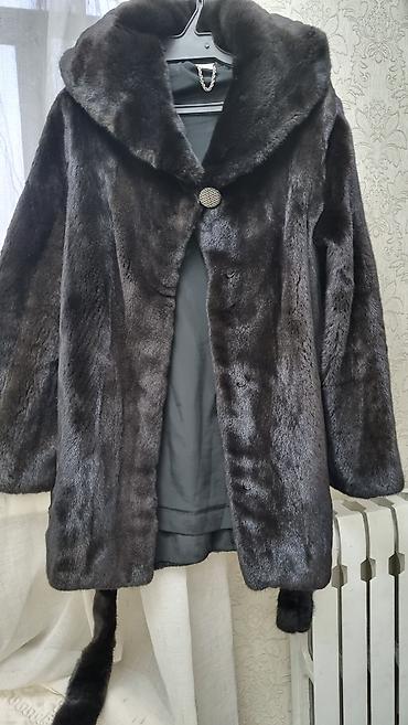Шуба из норки, темно‑шоколадный цвет. Новая. Характеристики: - Материал верха: 100% норка (ярлык “Fabric content: 100% mink”). - Подкладка: 100% полиэстер. - Размер по ярлыку: 52. - Классическая ...