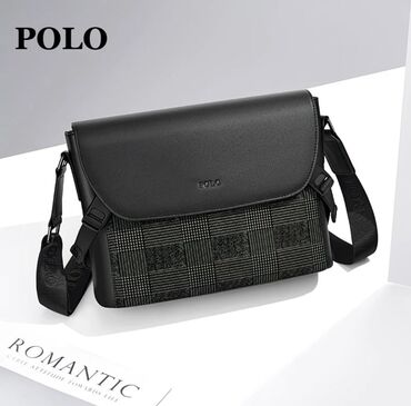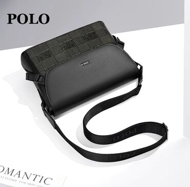 Мужская сумка через плечо POLO - Цвет: черный - Материал: фактурная экокожа - Формат: вертикальная, с клапаном - Ремень: регулируемый тканевый, крепления на металлической фурнитуре - Отделения и к...