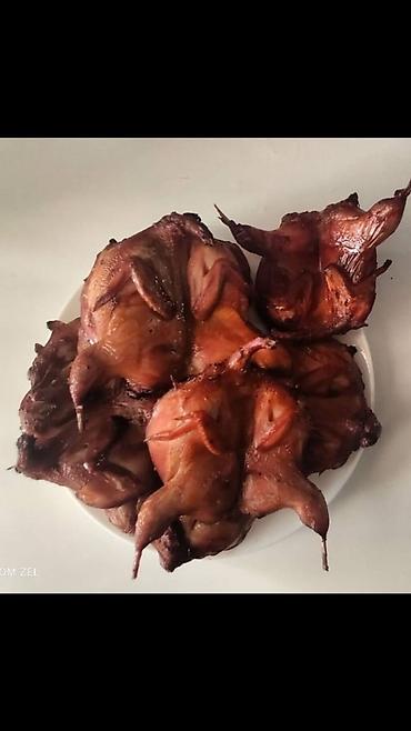 Перепелки живые: 2х недельные-100 сом. Месячные-150 сом. 2х месячные-300 сом.(несушки уже несутся) Самцы-200 сом Перепелиное мясо: 1 тушка 200-250 грамм. 1 тушка-200 сом. 1 килограмм-800 сом. Пе...