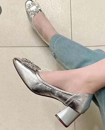 Продаю туфли серебро. фабричный Китай. кожзам. заказ у байера 42 р на стопу в 26 см. очень мягкие. каблук 4.5 см. прошу 1950 сом.