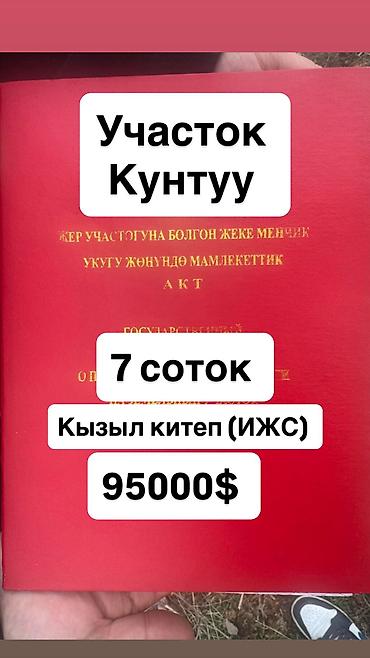 Земельный участок с госактом 🔥цена за 1 соток 👌12.000 $👍 🔥цена за участок 9соток 👌108.000$👍 - Категория: индивидуальное жилищное строительство. - Расположение: с. Кунтуу (указано на кадастровой схе...