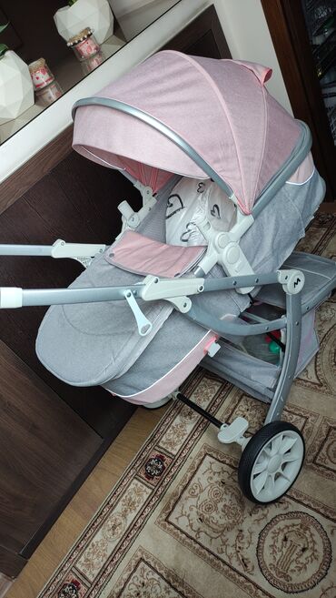 Продаю коляску два в одном, в комплекте сумка и ортопедический матрас, коляска в идеальном состоянии, также к нему в подарок идёт совершенно новый детский стульчик для кормления, цена 12 000 сом