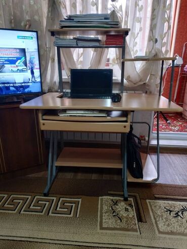 Продаются товары для бизнеса и дома: 1) Компьютерный стол – 10 000 сом, б/у. - Материал: ЛДСП под дерево - Столешница с технологическим отверстием под кабели - Выдвижная полка под клавиатуру - Тум...
